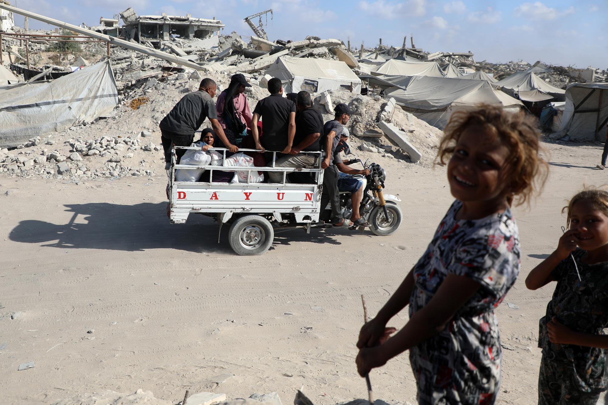 9月9日,巴勒斯坦民众携带物品乘车从加沙地带北部向南部撤离。新华社发(里泽克·阿卜杜勒贾瓦德摄)