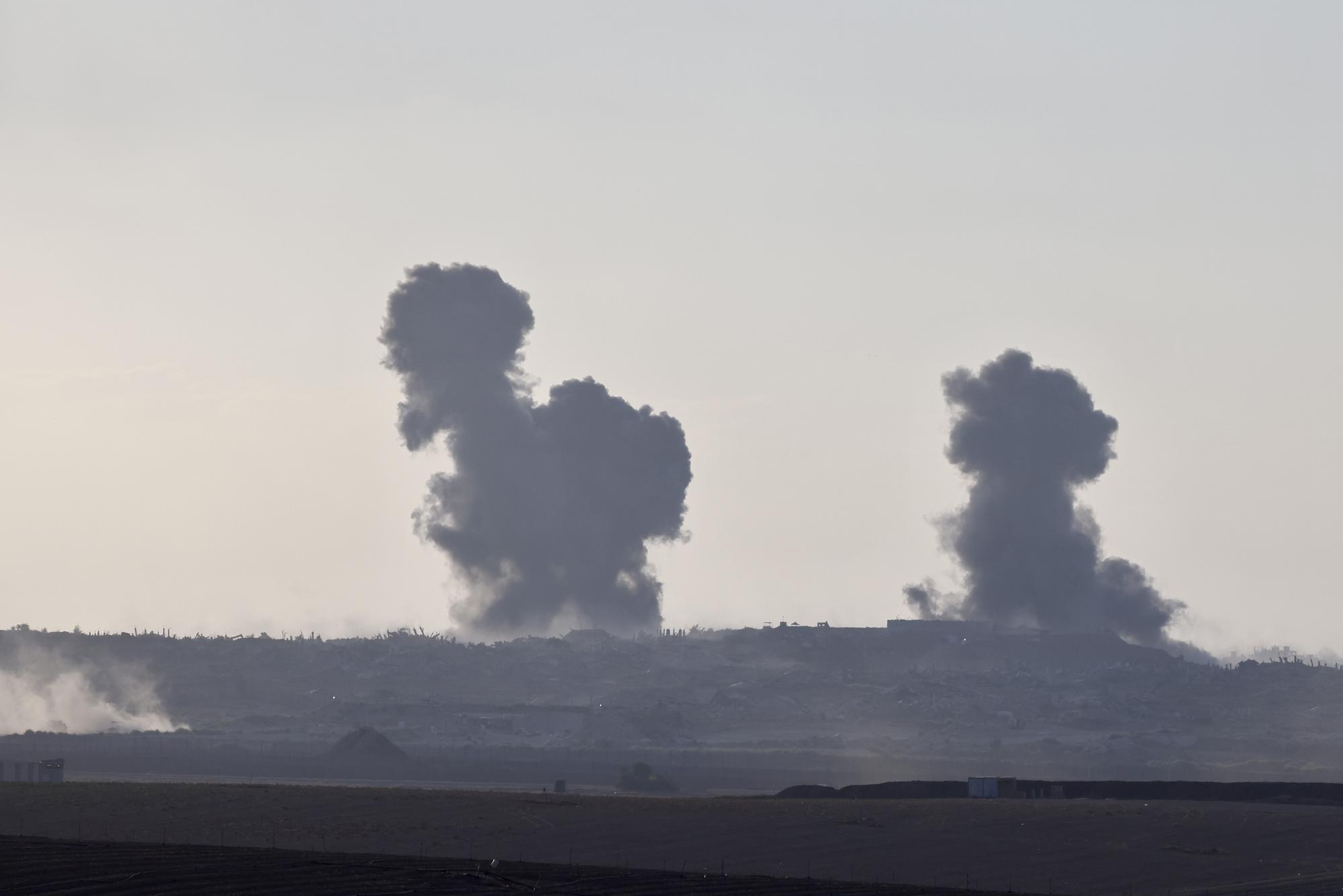 这是9月16日从加沙边境以色列一侧拍摄的加沙地带遭袭后升起浓烟的。新华社发(贾马尔·阿瓦德摄)